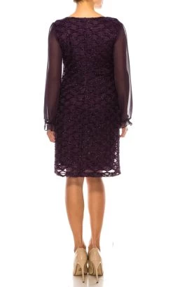 Adrianna Papell – AP1D103085 Lace Applique V-neck Piping Sheath Dress
