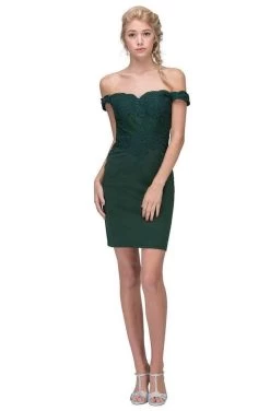 Clarisse – M6566 Lace Off-Shoulder Satin Sheath Knee Length Dress
