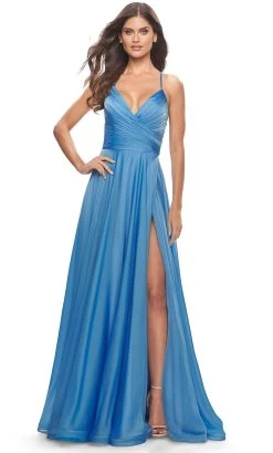 La Femme 30840 – Sleeveless A-Line Ruched Long Dress