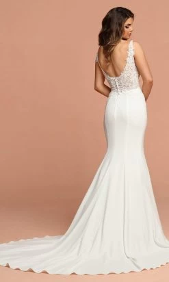 Da Vinci Bridal – 50592 Lace Plunging V Neck Tulle Mermaid Gown