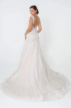 Dancing Queen Bridal – 123 Embroidered Deep V-neck Mermaid Dress