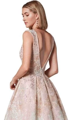 Andrea And Leo A1082W – Lace Applique Cap Sleeve A-Line Dress