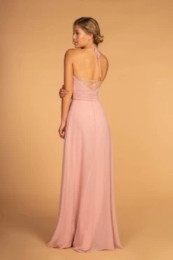 Elizabeth K – GL2606 Lace Pleated Halter Chiffon A-line Dress