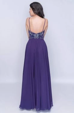 Nina Canacci – 6509 Scroll Beaded Plunging Sweetheart Chiffon Gown