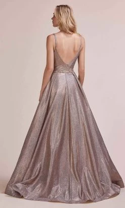 Andrea And Leo – A0647 Spaghetti Strap Glitter Metallic Dress
