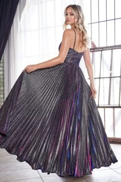 Cinderella Divine – CD0154 Plunging Beaded Appliqued Tulle Dress
