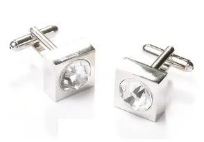 Add a dashing look to your outfit with these square silver cufflinks decorated with a blue gem in the middle and clear crystals. A variety of cufflinks make a great addition to any wardrobe because they add a sophisticated finishing touch to a formal attire. Look sharp in these affordable cuff links for job interviews, weddings, work, for any occasion. Also make a great gift for men!