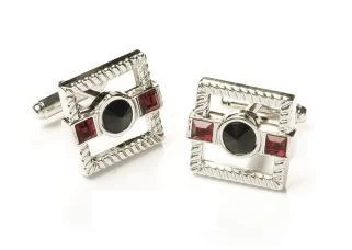 Add a dashing look to your outfit with these square silver cufflinks decorated with black and ruby red stones. A variety of cufflinks make a great addition to any wardrobe because they add a sophisticated finishing touch to a formal attire. Look sharp in these affordable cuff links for job interviews, weddings, work, for any occasion. Also make a great gift for men!