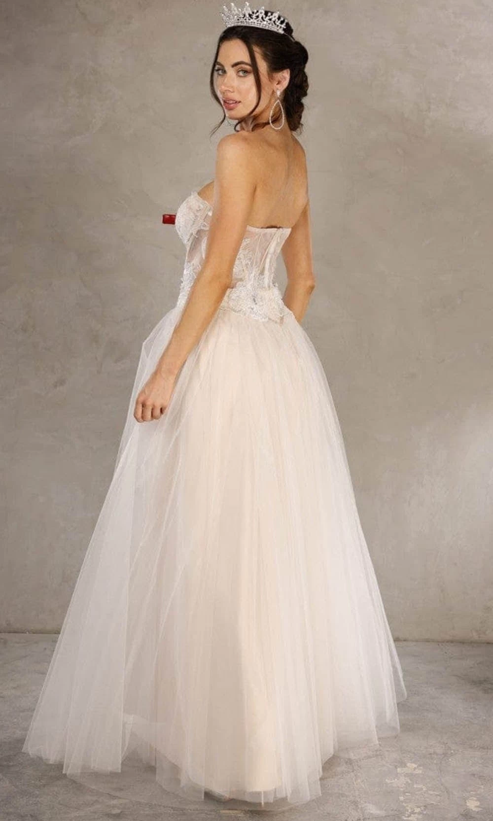 | Details: | Strapless, Corset Bodice, Lace Details, Beaded, Mid-Open Back, Zipper Closure, Floor Length Hem |